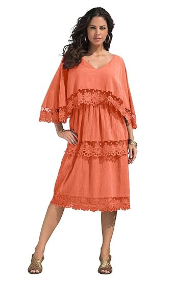 Roamans Women's Plus Size Gauze Dress | Amazon.com
